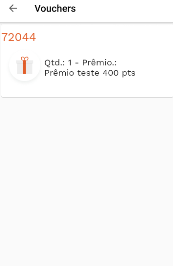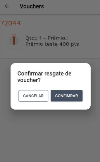 O prêmio resgatado via aplicativo e a pontuação do mesmo, irá aparecer na tela. Confira com o seu cliente se o prêmio está correto.