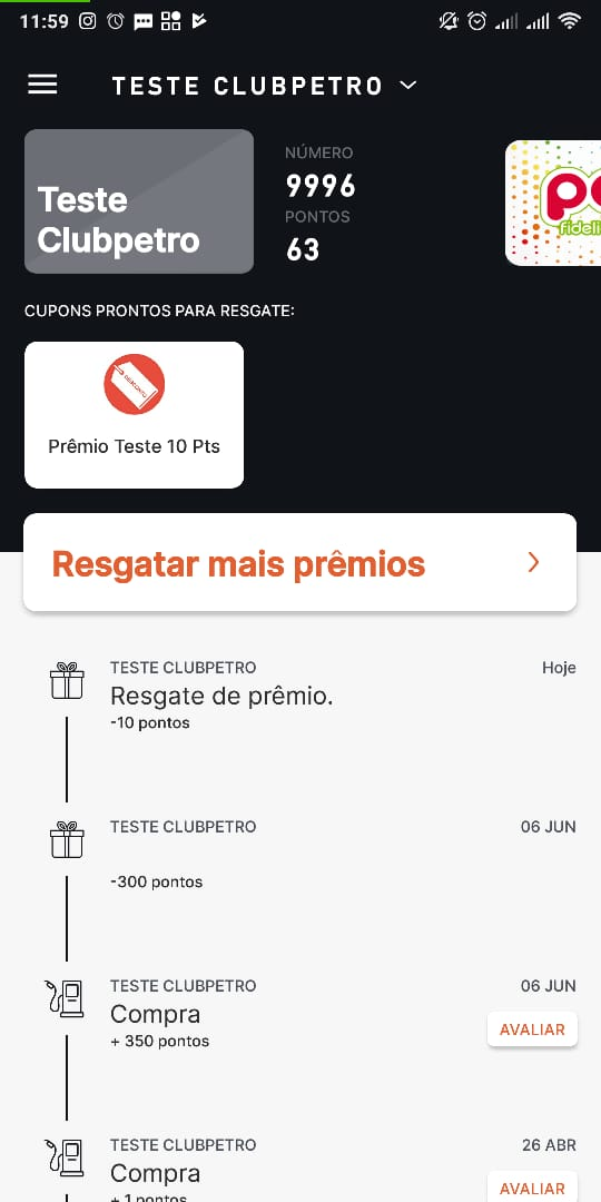 Aqui o cliente pode consultar as avaliações pendentes e avaliar o atendimento do posto de combustível.