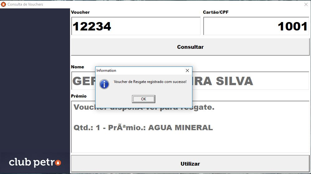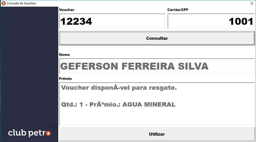 Ao aparecer esta janela, insira o código fornecido pelo cliente em "voucher" e o cartão ou CPF em "cartão/CPF"