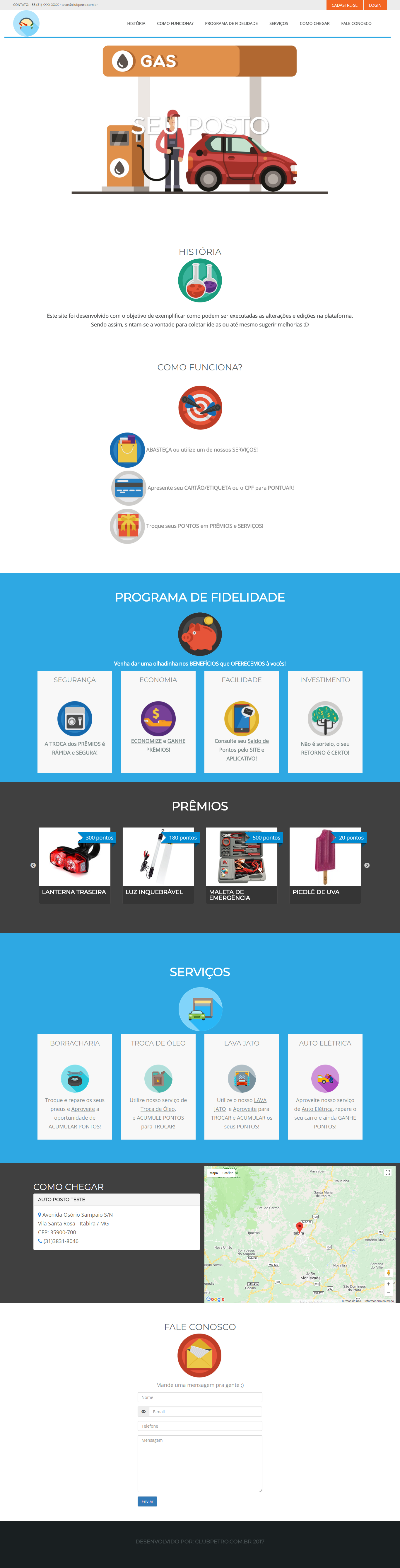 É só acessar: http://posto.clubpetro.com.br/teste/home