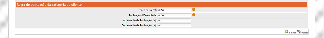 - Decremento de Pontuação (%): reduz a pontuação do cliente de acordo com a taxa escolhida.