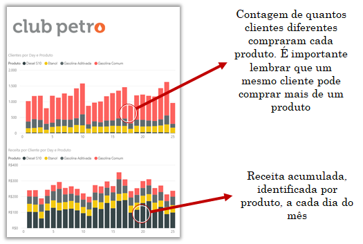 Na aba mês fidelizado temos os indicadores para entender o consumo do seu cliente. Cada cor representa um combustível diferente, podendo ser filtrado clicando em qualquer gráfico.