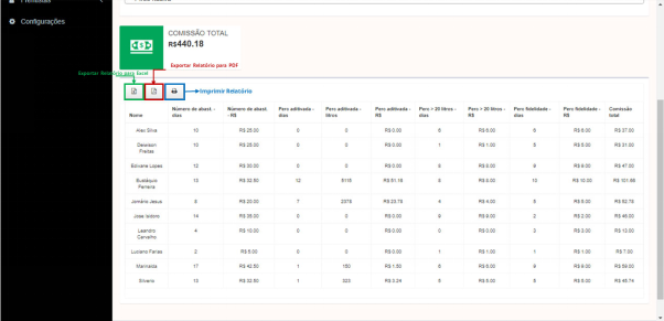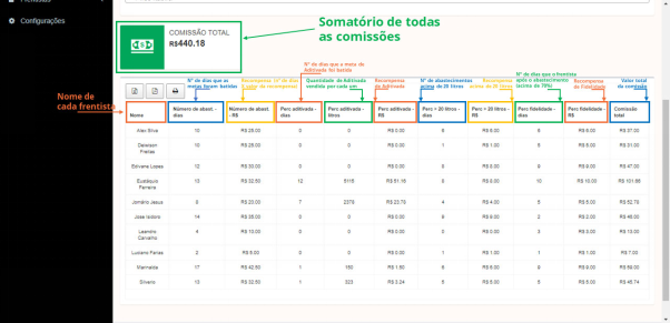 Contamos con diferentes informes o reportes en la herramienta gestión de metas. El principal entre ellos es el “informe de comisión a pagar”, en el tenemos una recopilación de desempeño de cada despachador con todo sus indicadores observados. con las informaciones que sirven de consulta tanto para los despachadores (playeros) de cuantos días alcanzaron las metas.