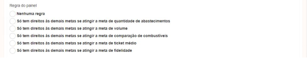 - ● Comparación de combustibles:define cuánto debe vender un despachador de estación de servicio de un combustible determinado usando otro como parámetro. Por ejemplo, si los combustibles Gasolina común y Gasolina aditiva se eligen en una métrica de X%, el volumen de Gasolina aditiva vendida debe corresponder al X% del volumen de Gasolina regular más Gasolina aditiva. Es importante tener en cuenta que el combustible elegido para ser evaluado es uno que está interesado en aumentar las ventas.