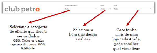 El Resumen del corriente mes presenta a simple vista los principales datos, de sus tiendas. Se puede filtrar horas específicas y categorías de clientes diferentes, bien como elegir entre una de o más tiendas de la red.