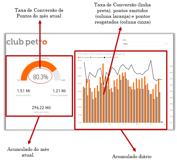 Supervise la emisión diaria de puntos del corriente mes, así como cuantos puntos fueron canjeados y cual es la tasa de conversión de puntos.