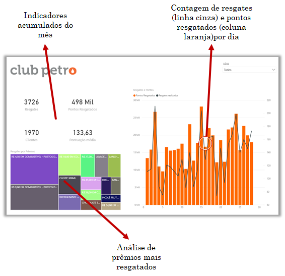 Analise su catalogo de premios, vea cuales son los premios más canjeados y la participación en el total de los premios. Este análisis es observado cuanto es la cantidad de canjes y la suma de puntos canjeados.