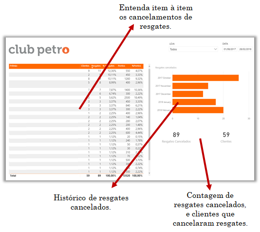 Análise que premios están siendo devueltos, cuantos ya fueron devueltos y cuantos clientes ya cancelaron. Aquí usted puede supervisar si algún producto está desmotivando a sus clientes para facilitar la identificación de problemas.