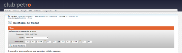 Usted verá cuántos canjes fueron realizados, cuantos premios fueron concedidos, a qué cantidad de clientes y cuál fue el total de puntos.