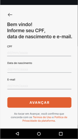 O cliente deverá completar com os dados utilizados no cadastro dele do programa de fidelidade. O CPF e a data de nascimento devem bater com o cadastro, já o email deve ser o mais utilizado pelo cliente, não necessariamente o cadastrado previamente, pois caso o cliente precise alterar a senha dele, essa redefinição será feita pelo email.