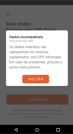 Se houver alguma inconsistência com o cadastro do cliente, dados incompletos ou errados de acordo com nossa base de dados, ele também será orientado a procurar o seu posto de cadastro para atualizá-los.