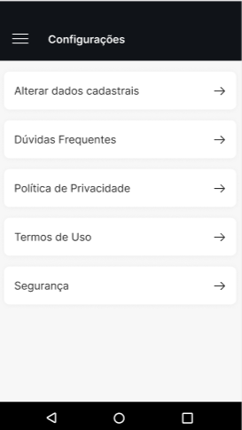 Caso o seu cliente já esteja logado no aplicativo e quiser alterar a atual senha dele, basta acessar o Menu Configurações e acessar a aba Segurança. Nessa opção ele também poderá cadastrar ou alterar a biometria.
