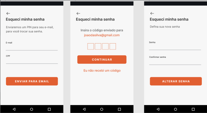 Em seguida clique em Esqueceu a senha? A seguinte tela irá aparecer pedindo alguns dados. O cliente deverá inserir o email que utilizou para se cadastrar no aplicativo e seu CPF e então clicar em Enviar Para Email.