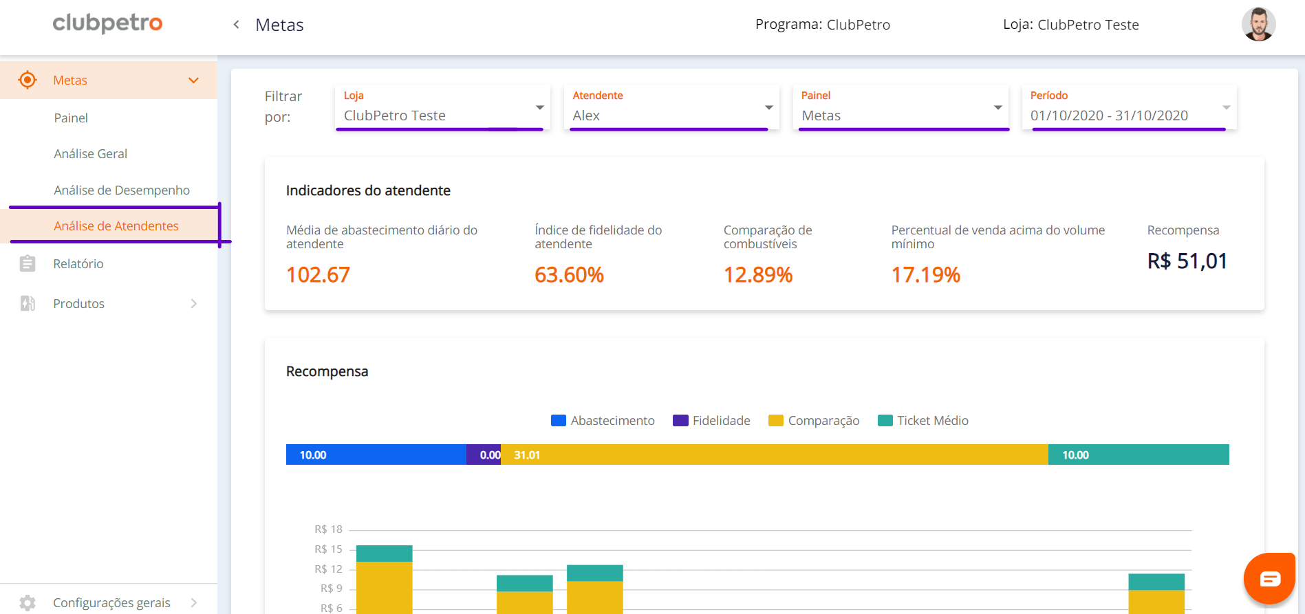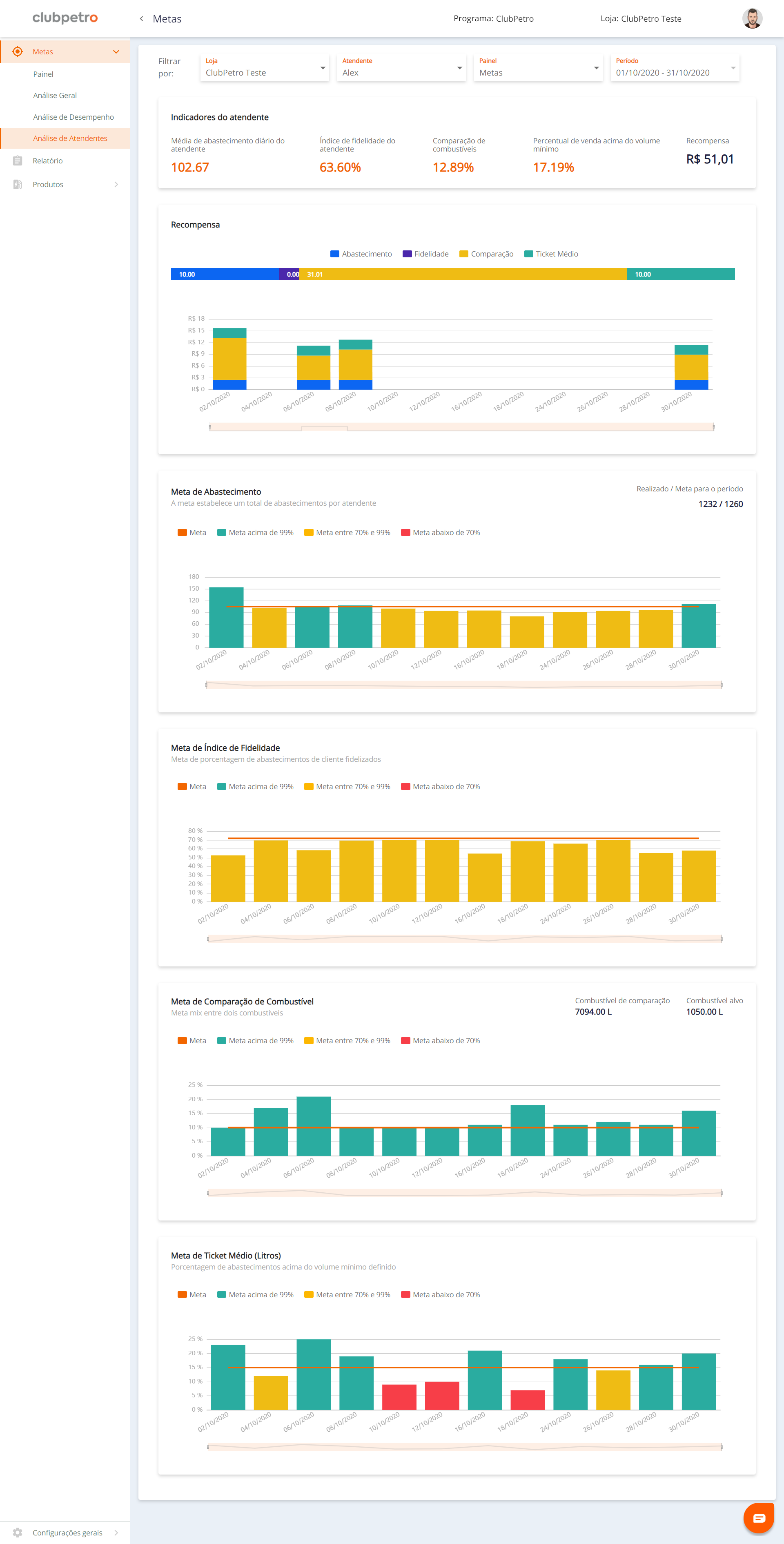 - Meta de Ticket Médio (em Litros) (caso tenha sido configurada por você)