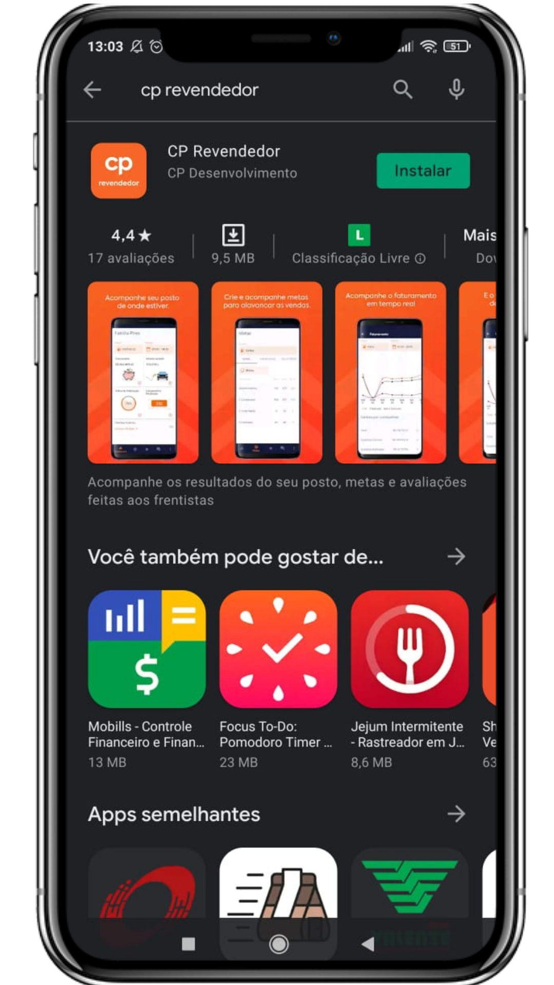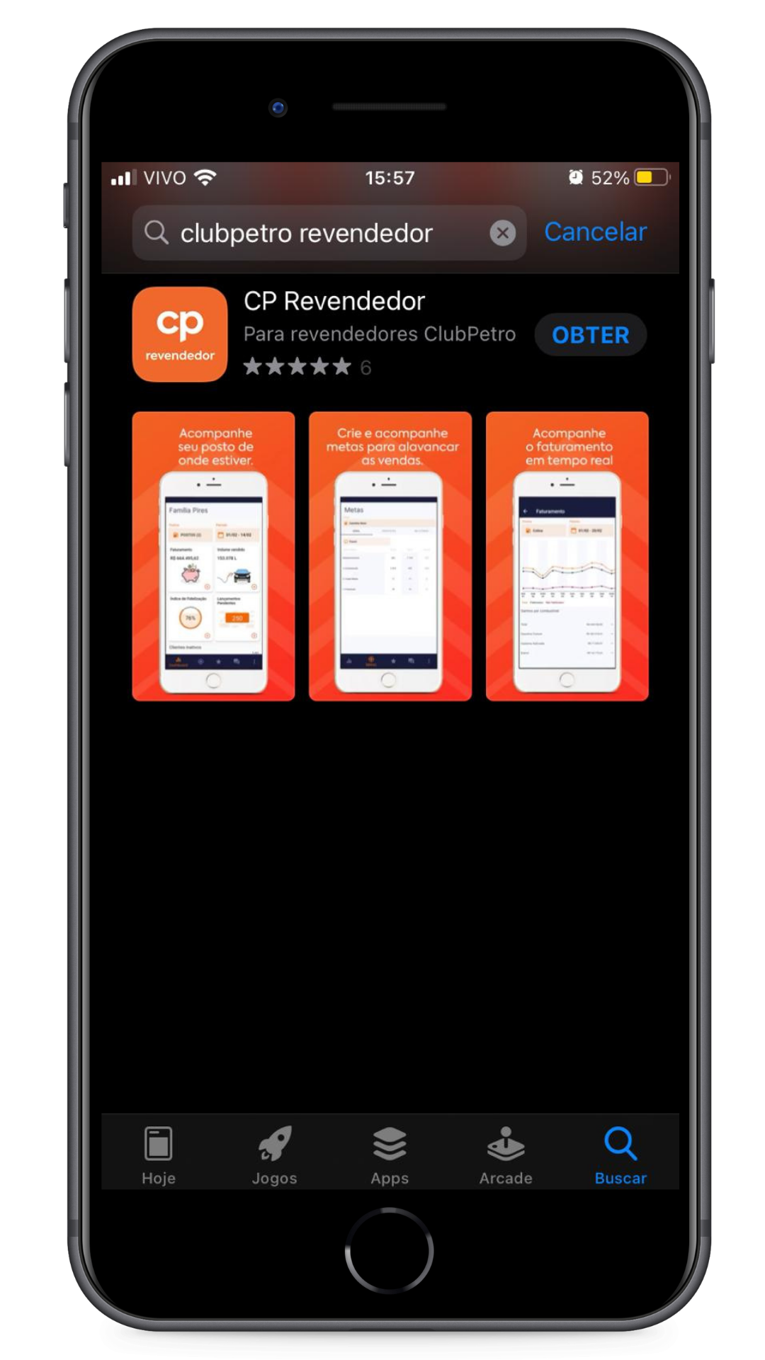 Localize o app na Apple Store, digitando na barra de pesquisa "CP Revendedor".