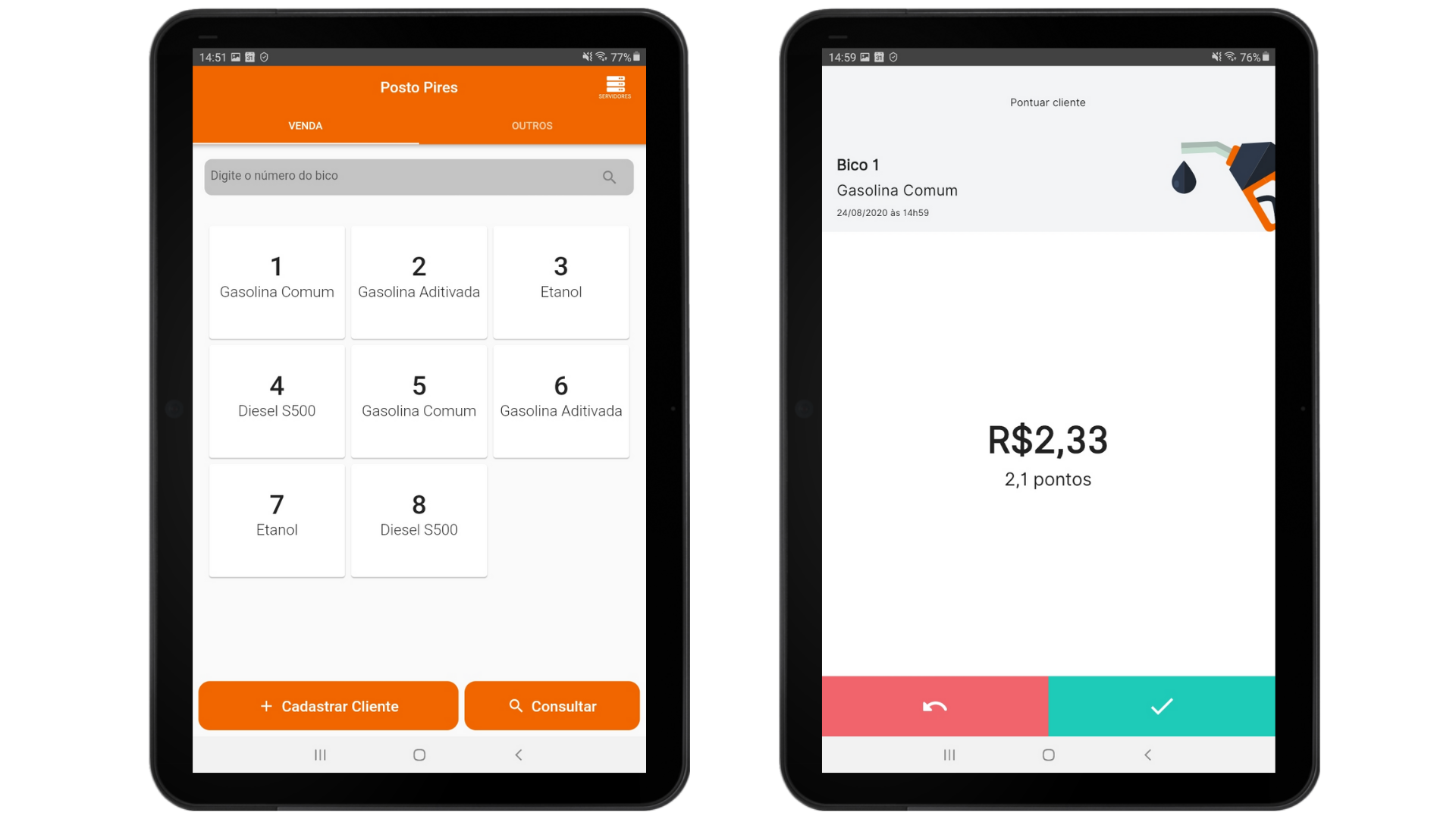 2. Abrirá uma tela, com o número do bico, o tipo de combustível, a data, a hora e o valor da venda e a quantidade de pontos gerados.