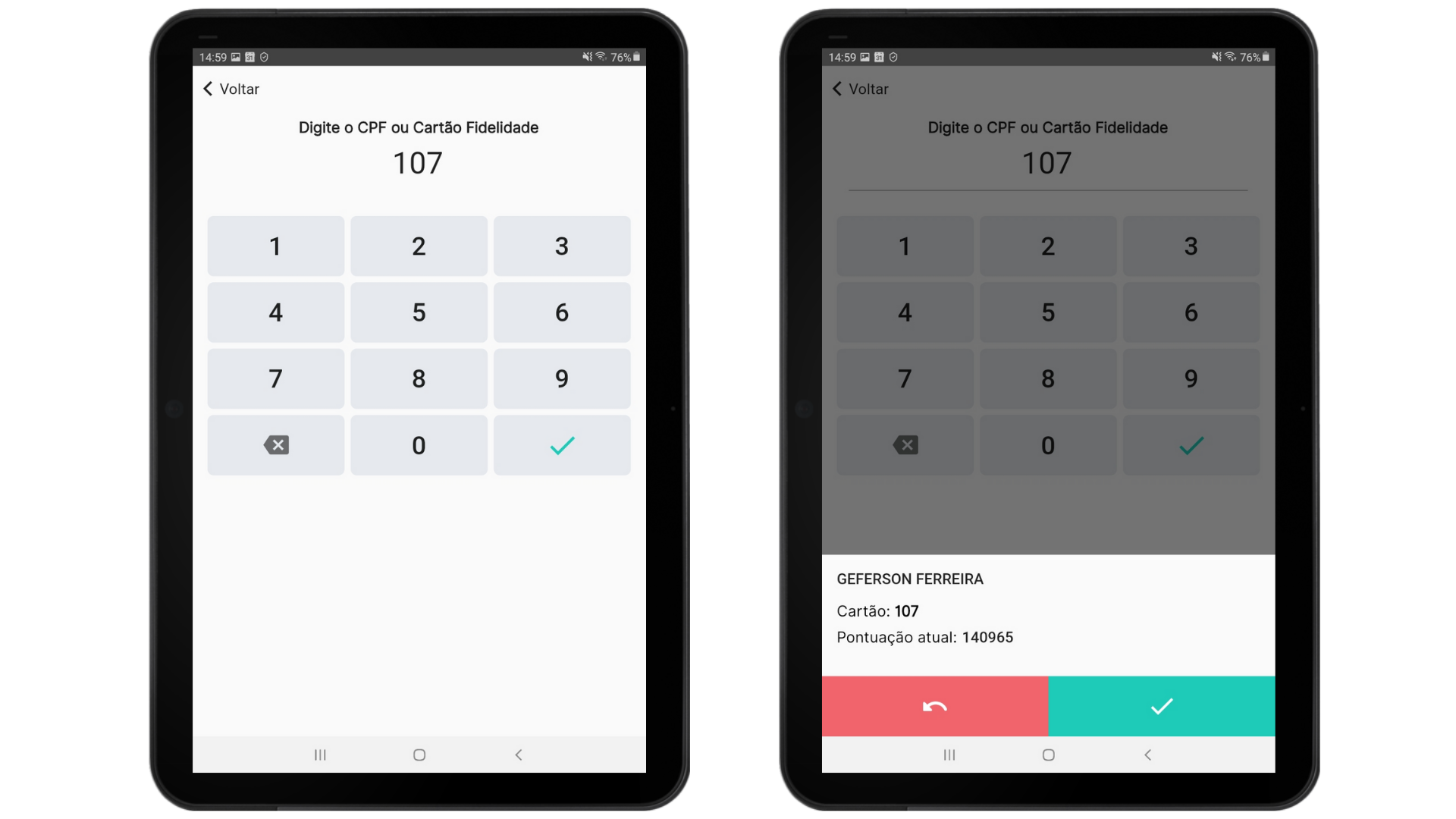 4. Na próxima etapa, informe o número do CPF ou número do Cartão Fidelidade do cliente.
