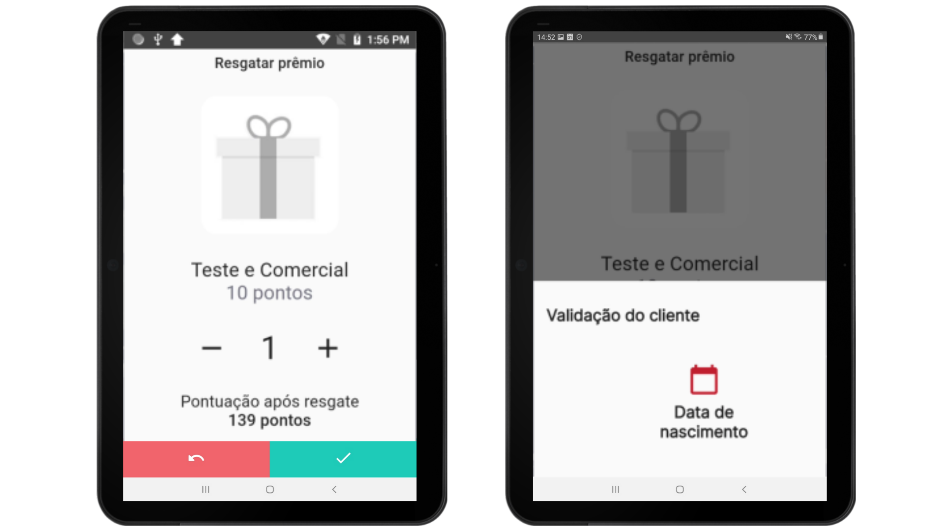 Para resgatar um prêmio pelo CP Terminal por meio do tablet Android: