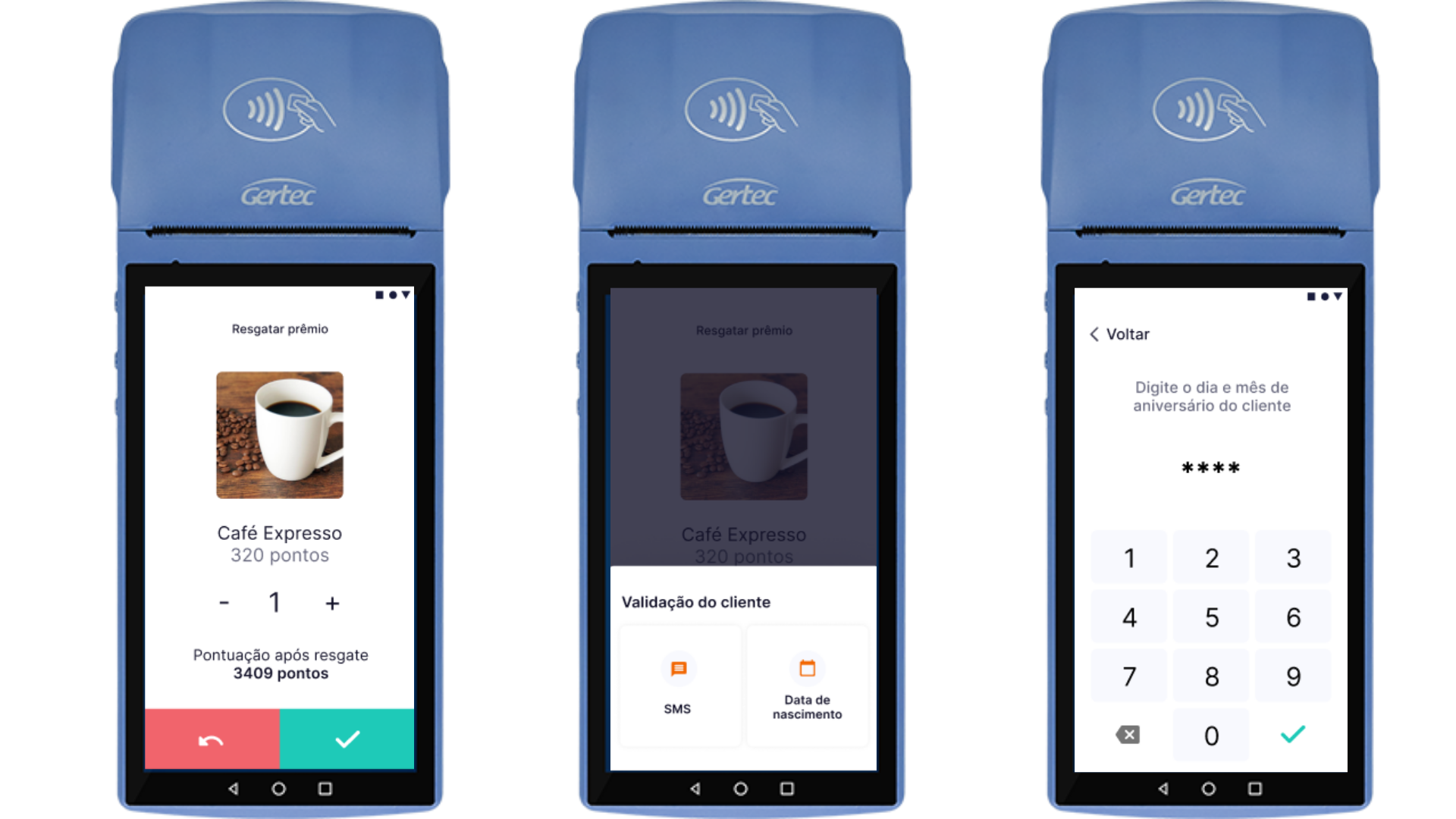 5. Para validar o resgate, digite o dia e o mês da data de nascimento do cliente.
