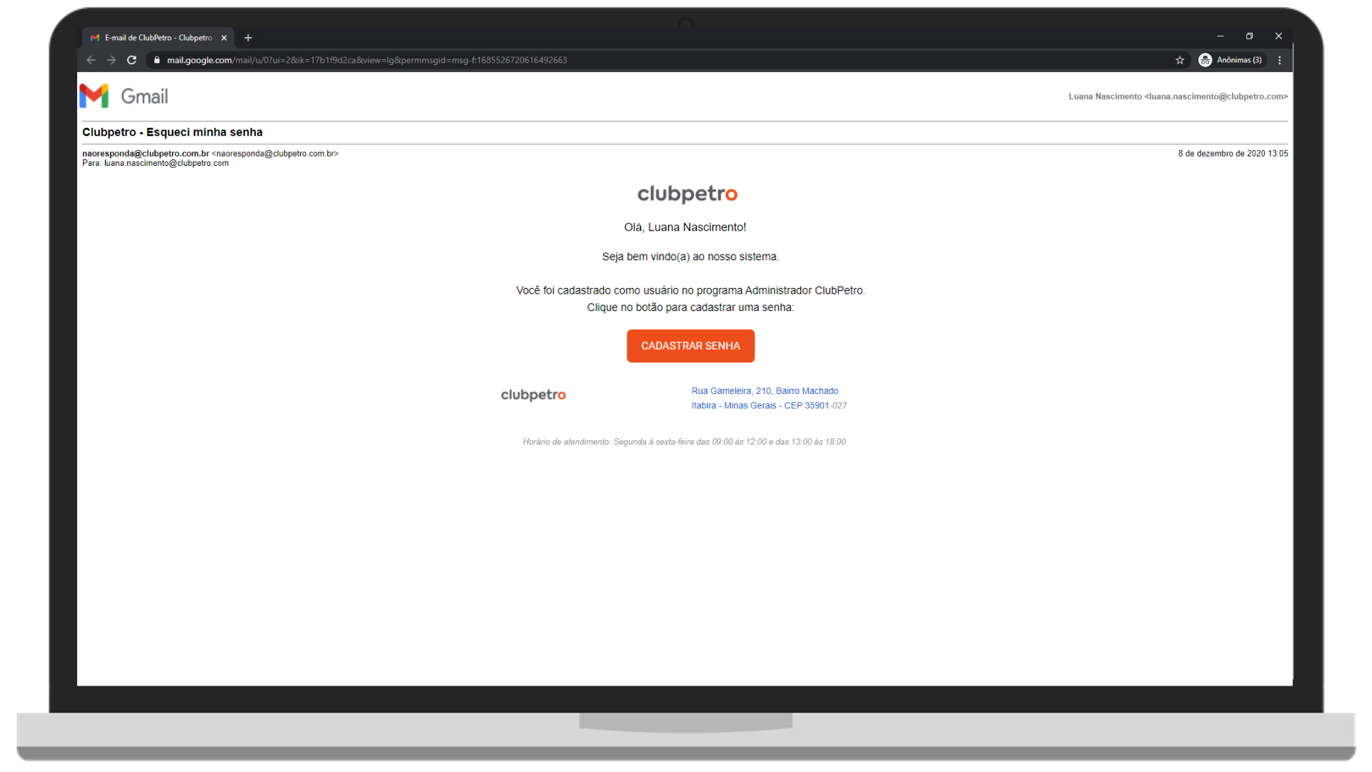 Um link será enviado via e-mail que te redirecionará para a página de cadastro de senha, a que você usará para entrar no sistema.