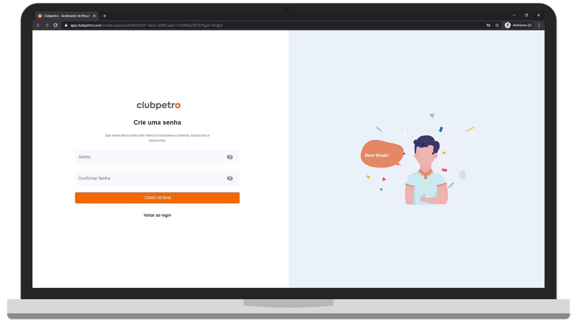 A equipe do ClubPetro irá criar um usuário para você no sistema. Para prosseguir no cadastro você deverá criar uma senha.