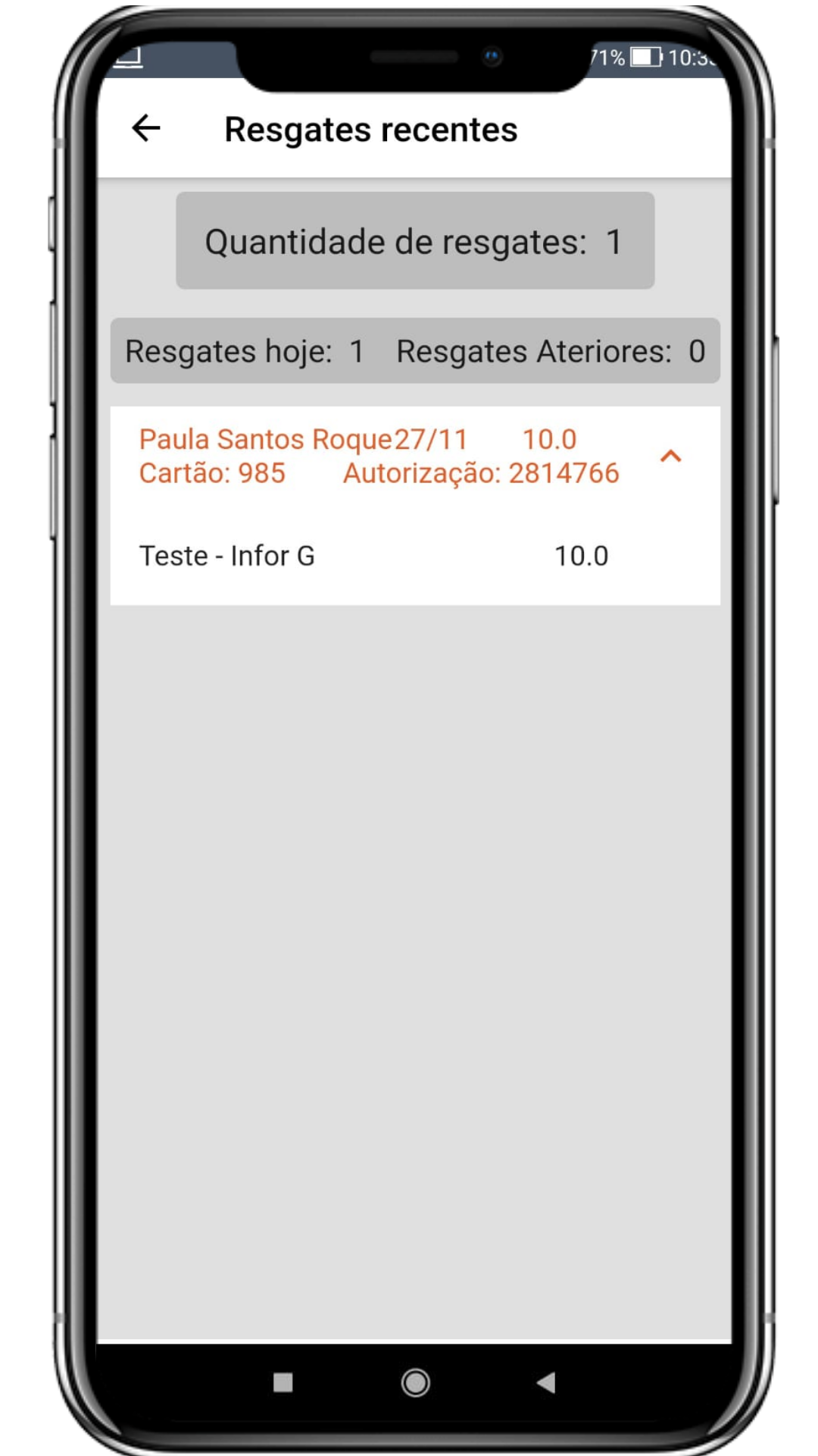 O parceiro poderá conferir os resgates realizados no dia presente e no dia anterior. Com isso ele poderá fazer o controle de seu caixa e identificar possíveis inconsistências.