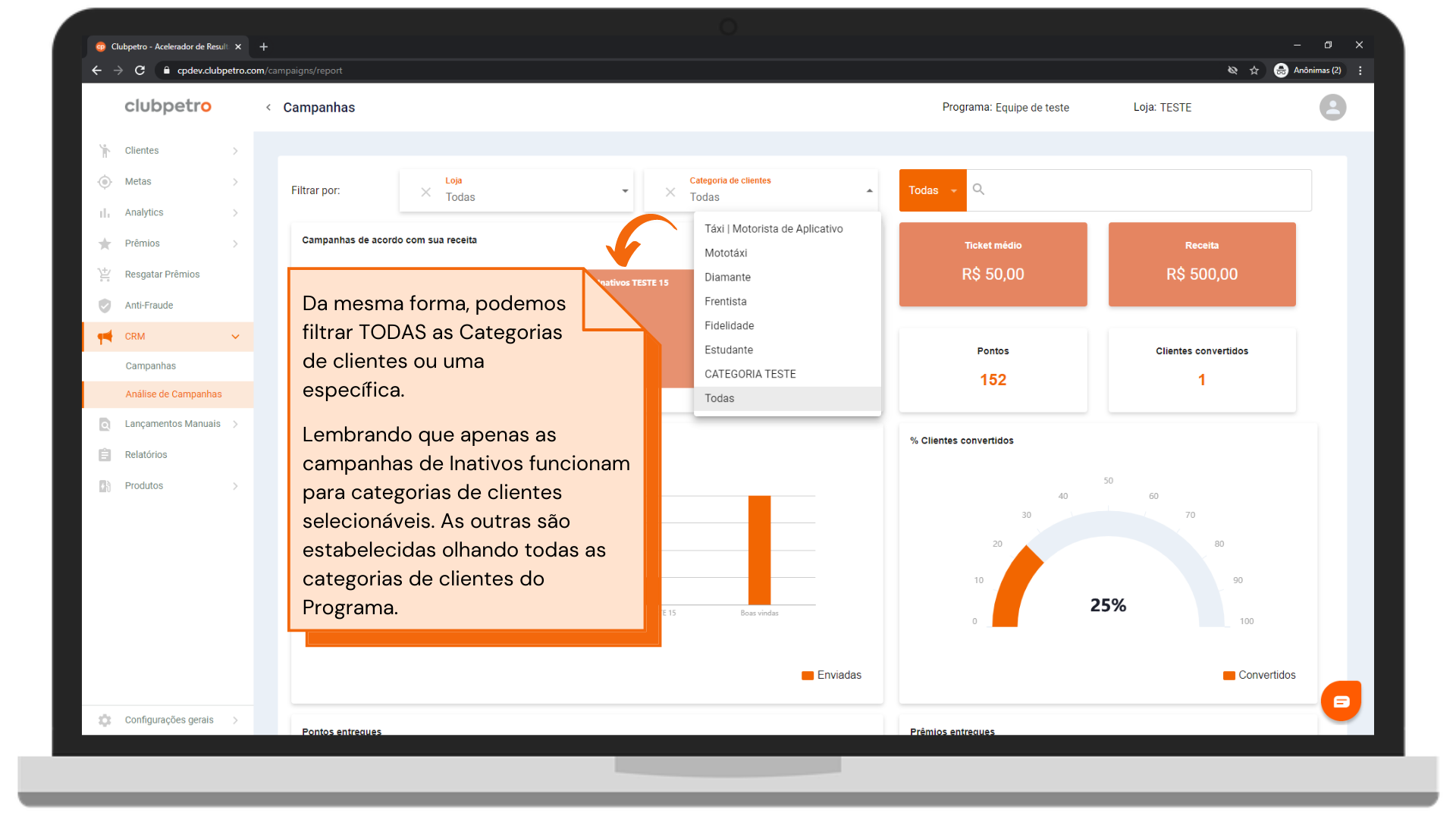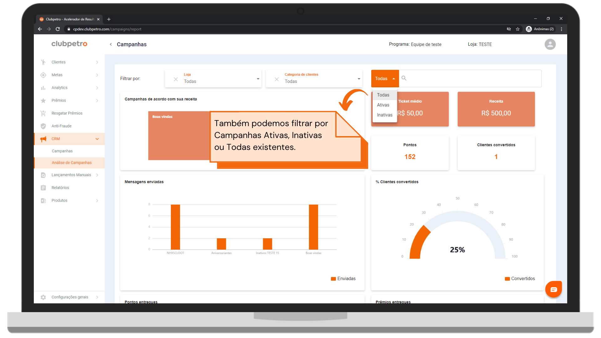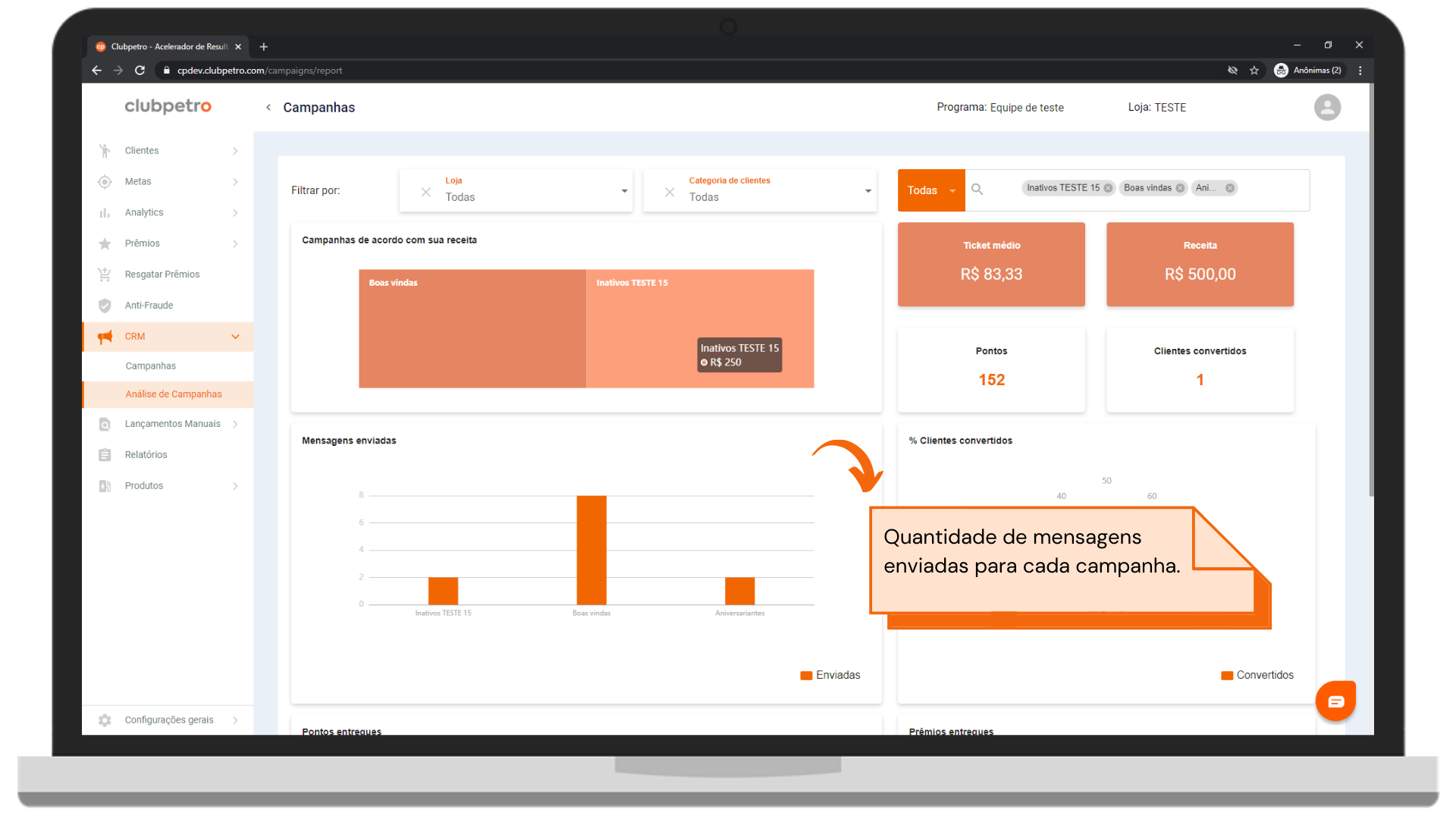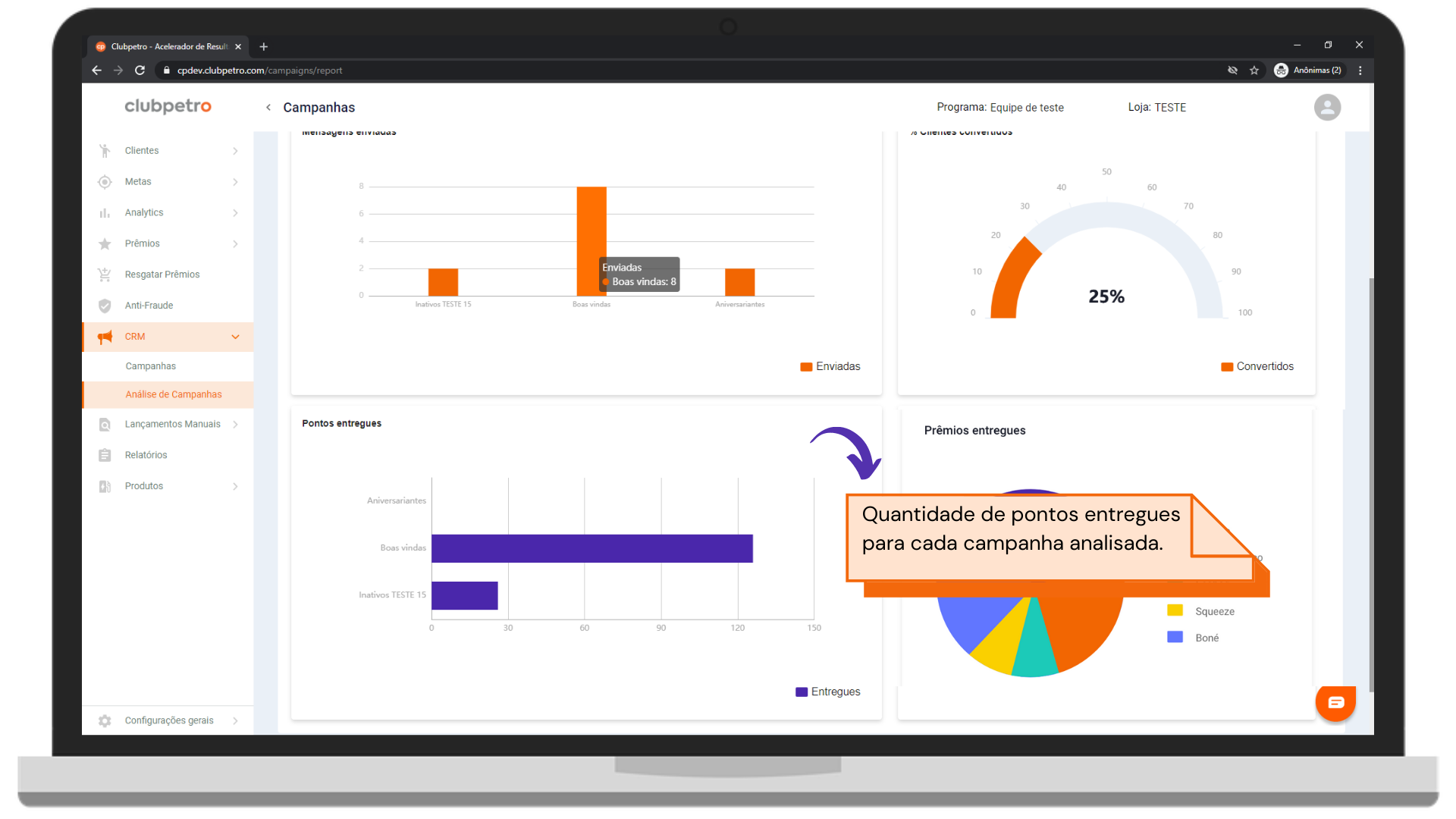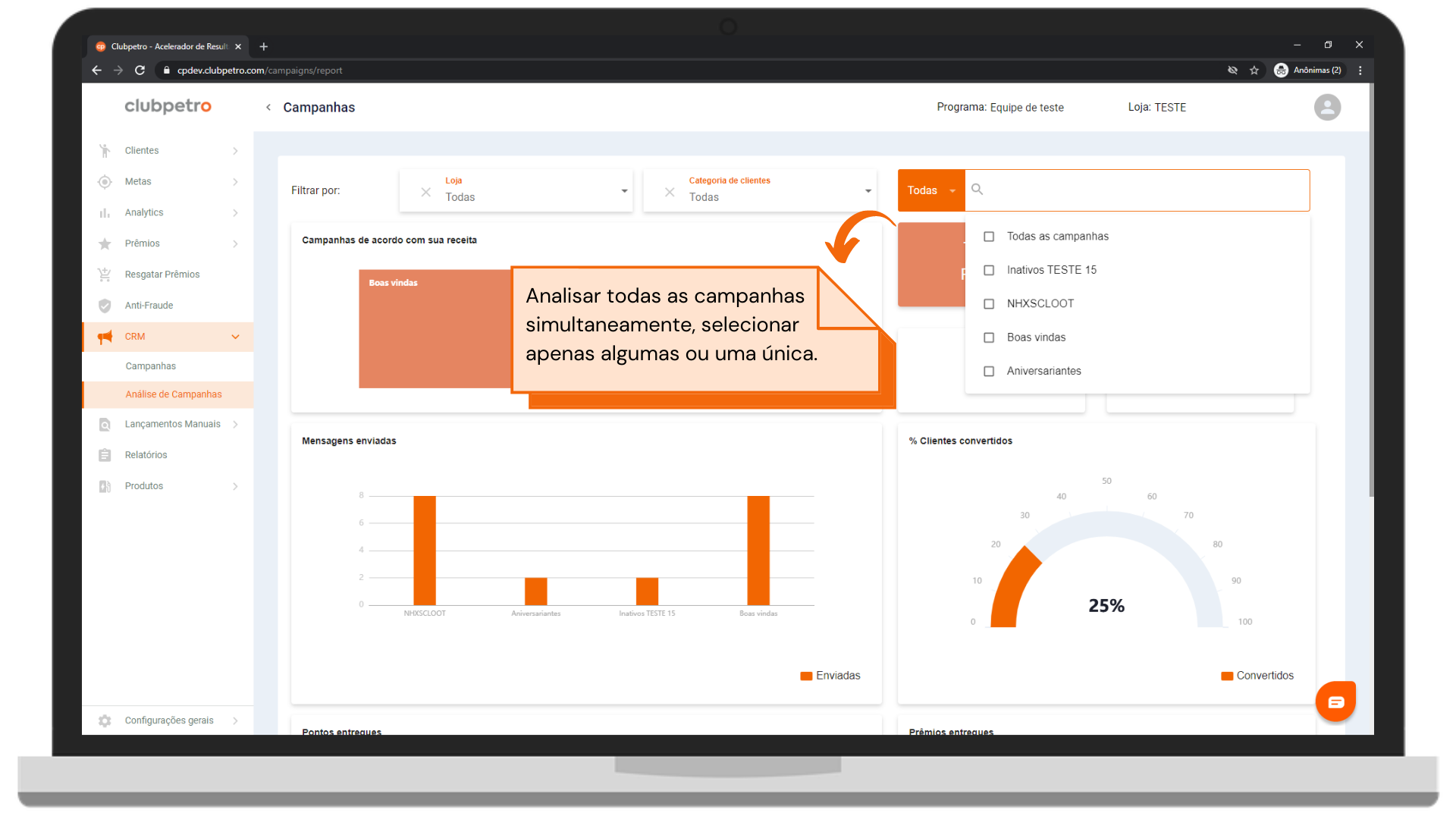 O CRM oferece um relatório para fazer análises do sucesso das suas campanhas.